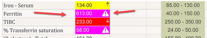 Notably, two out of the three markers with alarmingly high values were associated with iron, while the remaining iron-related markers were also elevated. Consequently, I diagnosed him with iron overload—an excess of iron in his body—a condition that had gone unnoticed by his previous healthcare providers.