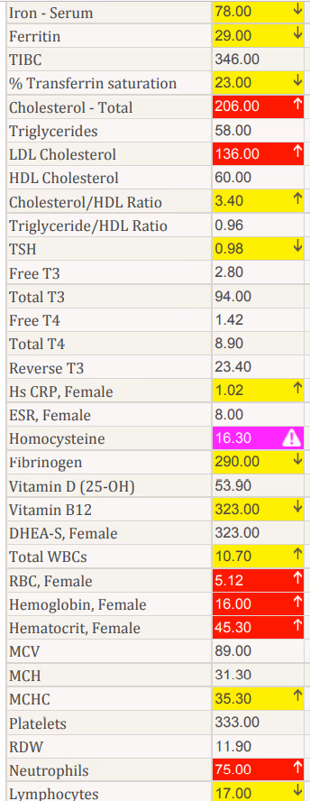 - Dr. Hugh emphasizes the importance of running basic labs before specialized tests, and in this case, they discovered that the patient’s white blood cell count was elevated at 10.7. The normal range is between 5.5 and 6.5, indicating an infection or chronic inflammation. Further symptoms such as low blood pressure, pounding heartbeat, and light and sound sensitivity confirmed inflammation in her body.