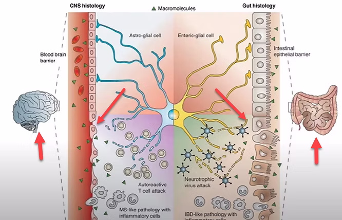 Similar to the blood-brain barrier, the gut contains a delicate barrier, maintained by tight junctions between cells. When these junctions break away, it leads to a condition known as “leaky gut.