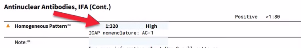 Visuals speak louder than words, so allow me to share a snapshot of one of my client’s lab results. There it is – the red arrow, pointing at the number one dash 320. This isn’t what you want to see. This is high ANA (Antinuclear Antibody) territory, indicative of an overzealous immune system that might be taking aim at your body’s cells. What you want is a negative result – zero. That’s the hallmark of a normal ANA result, signaling no autoimmune diseases at play.
