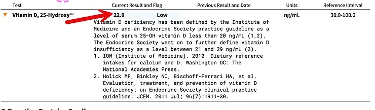 ✔ If it’s too low, start supplementing with vitamin D daily! You can do this easily over the counter, and also try to get more sunshine for natural Vitamin D.